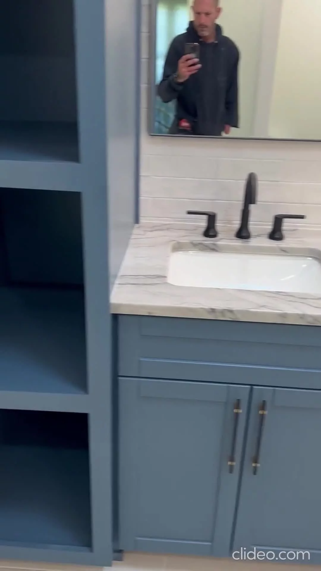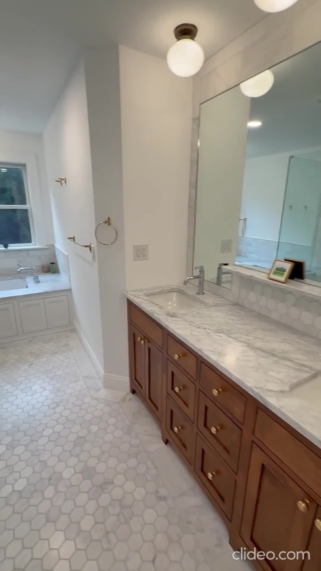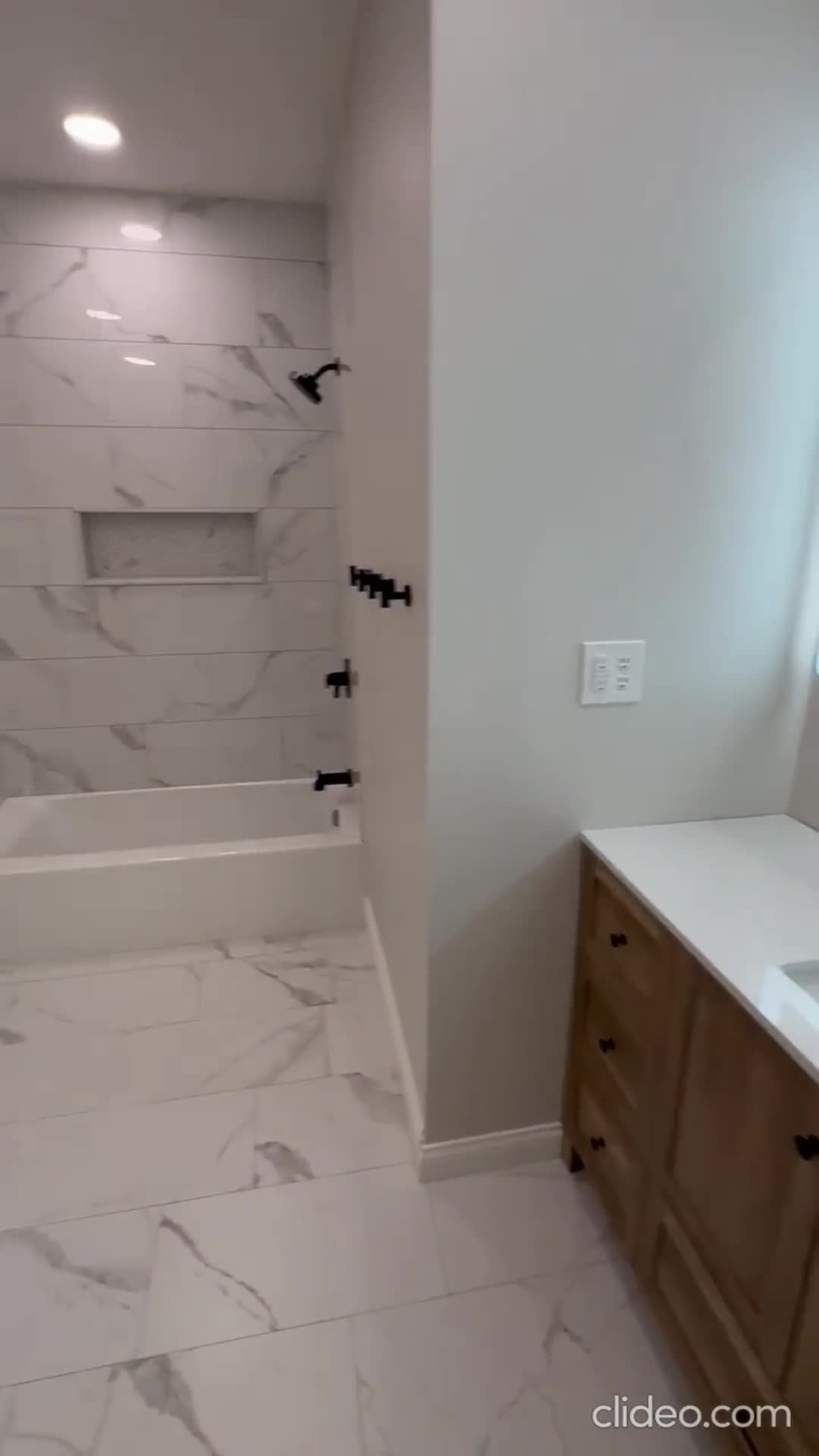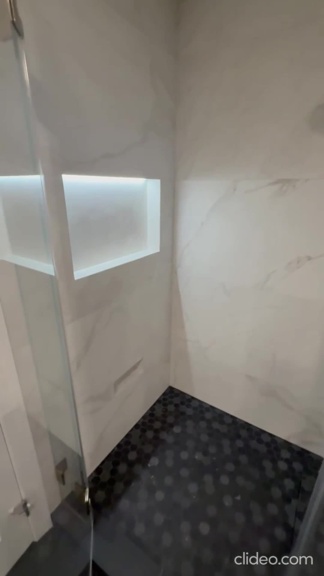 This beautifully remodeled basement level bathroom features elegant marble accents throughout, creating a timeless and luxurious atmosphere. Custom shelving provides ample storage while maintaining a clean, organized look. Modernized vanity lighting enhances both functionality and ambiance, offering bright, flattering illumination. The open floor plan maximizes space and flow, making this bathroom both stylish and inviting.