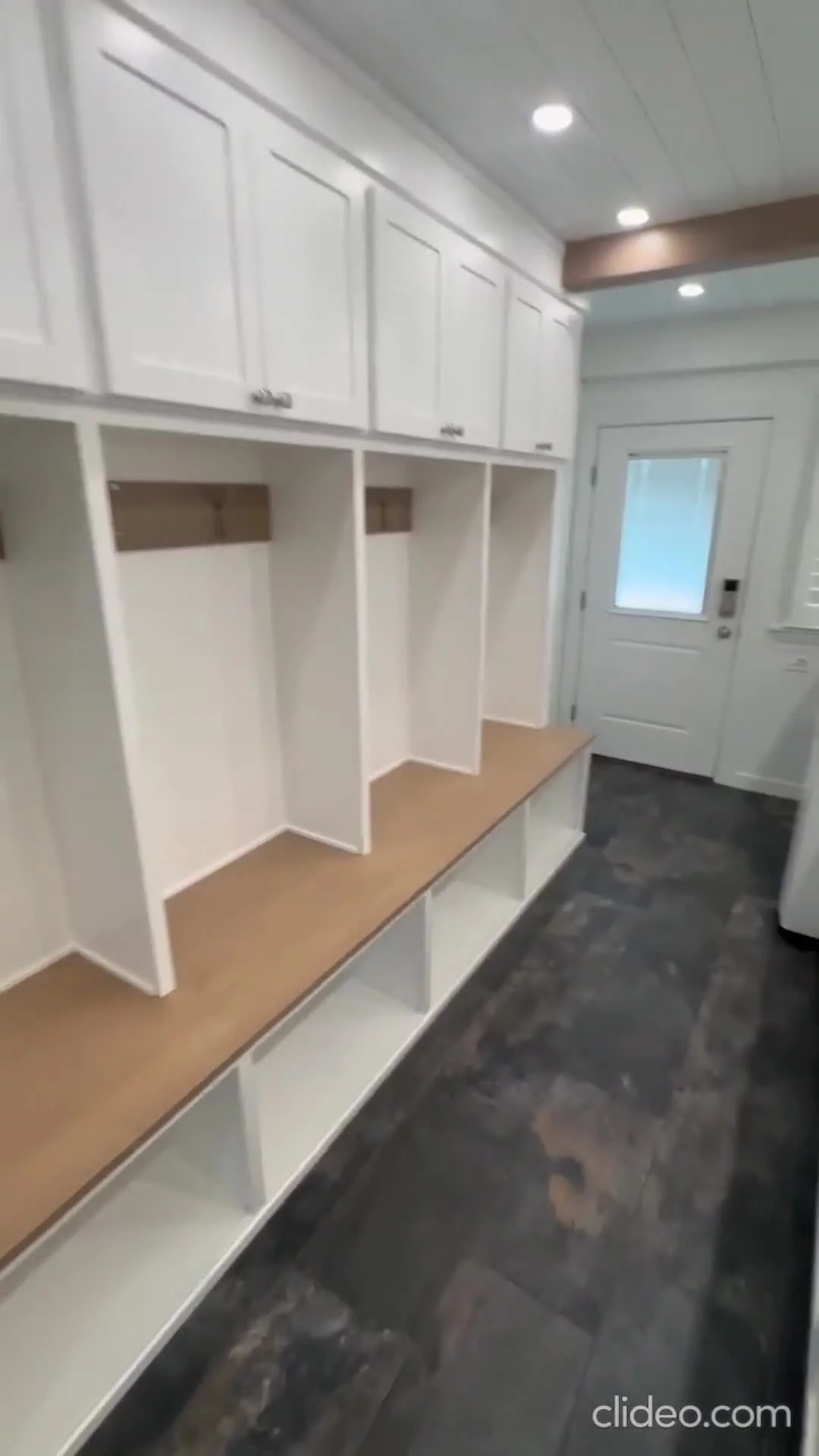 Additional custom storage cabinets provide ample room for cleaning supplies, shoes, and seasonal gear, enhancing overall organization. Recessed lighting was installed to brighten the space evenly, eliminating shadows and creating a welcoming atmosphere. This remodel not only improves functionality but also adds a polished, cohesive look to the mudroom, making it a streamlined hub for family routines.