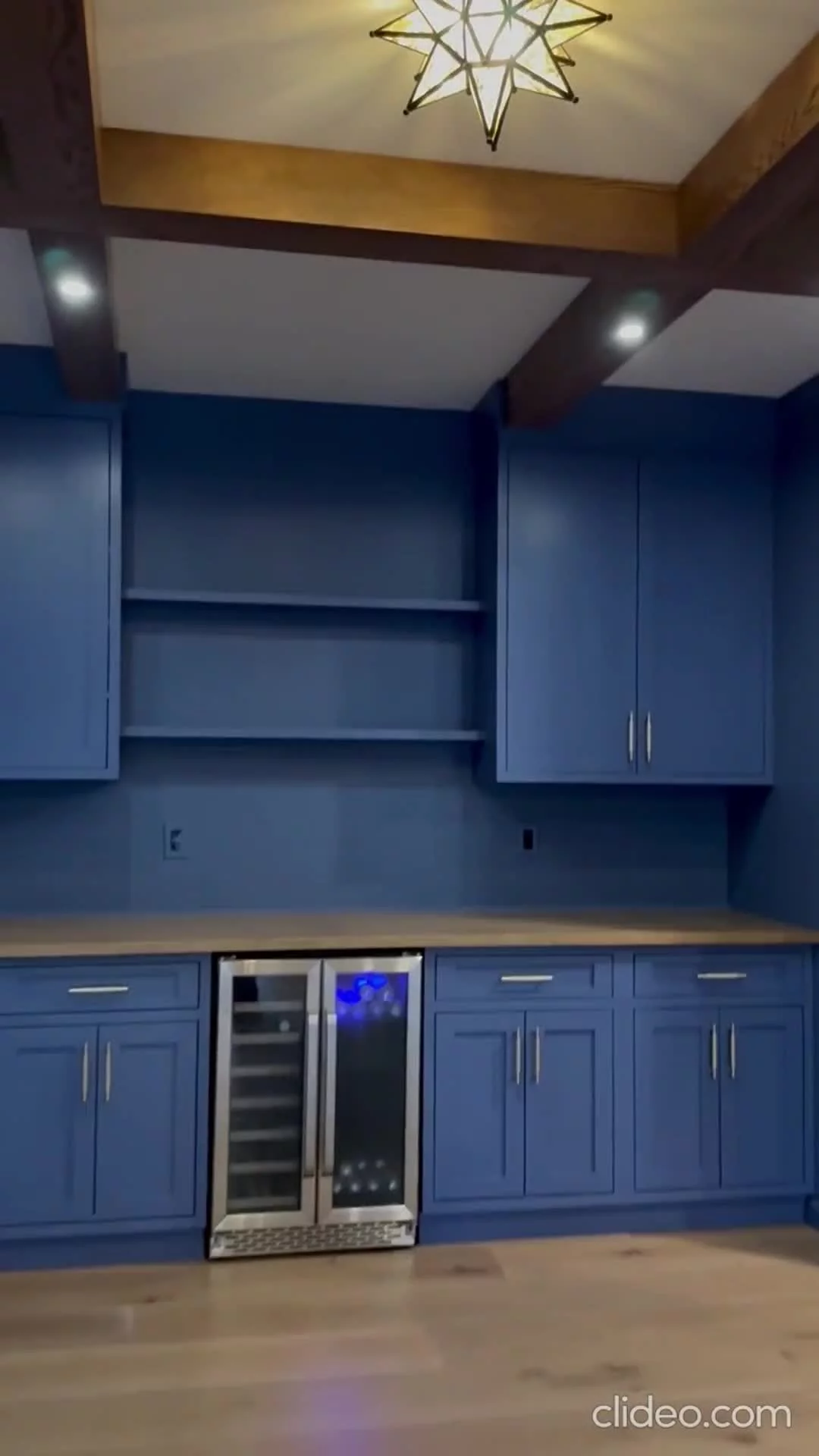 Transform your basement into a stunning, color-rich retreat with a remodel that combines beauty and functionality. This space features custom built-ins designed specifically for ample storage, keeping everything organized while adding architectural interest. A sleek dry bar serves as a perfect spot for entertaining guests or unwinding after a long day. A custom-built staircase enhances the room's unique character, seamlessly connecting the remodel to the rest of the home. Throughout the basement, new flooring adds warmth and texture, perfectly accentuating the beautiful blue color palette chosen for the walls and furnishings. This harmonious blend of design elements creates a sophisticated, comfortable environment ideal for both relaxation and social gatherings.